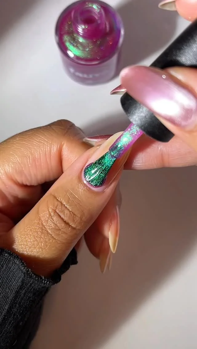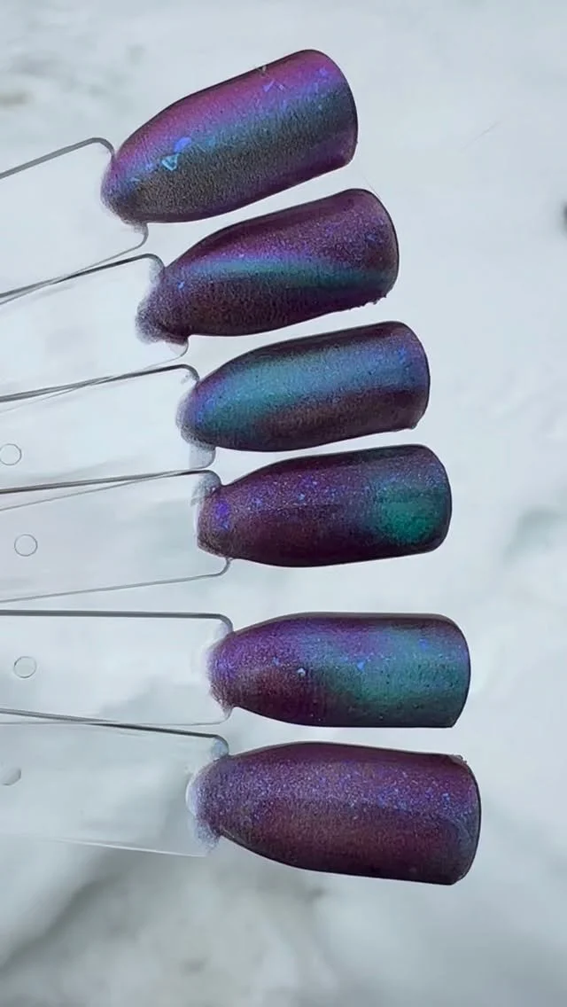 “Very pretty shade with great magnetic shift! It's a very pretty Berry shade with flashes of gold, green and turquoise depending on the lighting. Another one that's good for any season!”