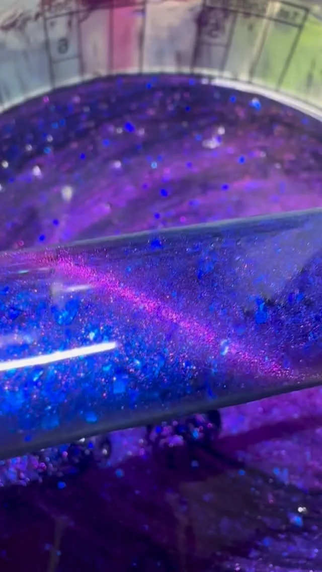 “Wearing this one right now. Blurple teal jelly with a 1,000 holo sparkles. A treasure for my collection for sure.”