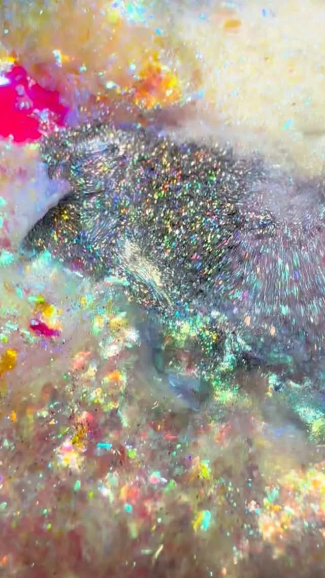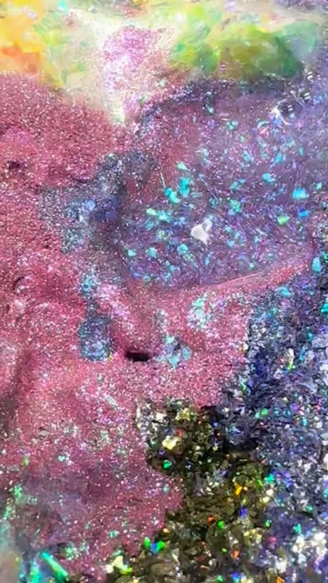 “Very Rumi from KPop Demon Hunters. Very pigmented, lovely pink shimmer, and I love the surprise of the teal glitter. Excellent formula. Benefits from a glitter topper.”