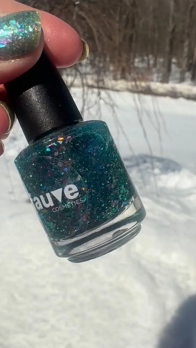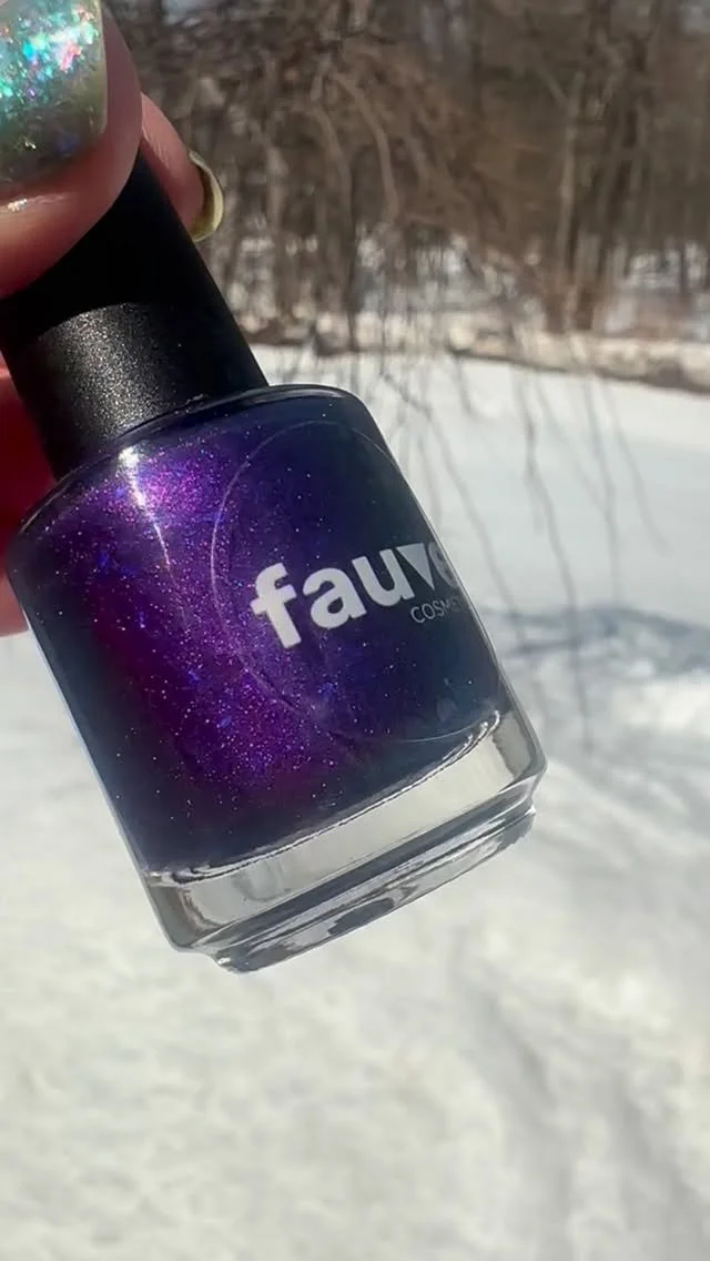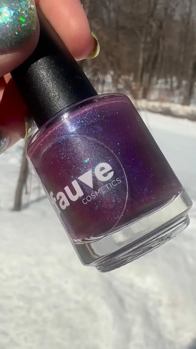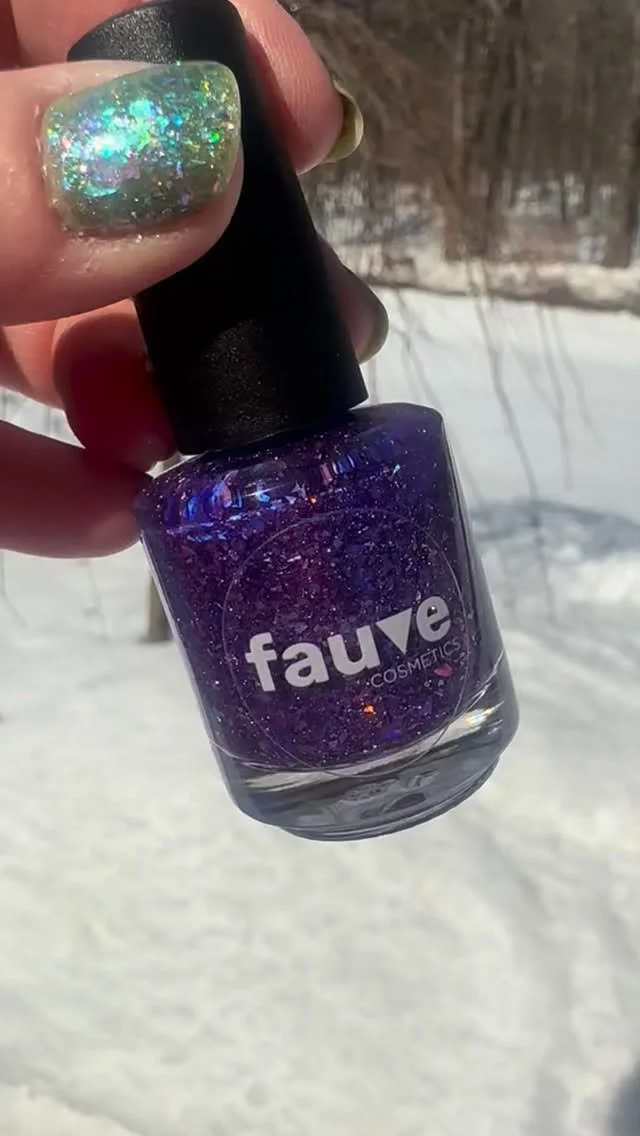 “I love this shade a lot! I'm not a huge fan of specialty glitters, but the Fauve ones are just so well done and fun. I'm going to have to play around with the application to try and get those most out of the thermal and the snowflake glitters. I also love that this one has blue flakies mixed in the with matte white glitters. It's a perfect winter polish!”