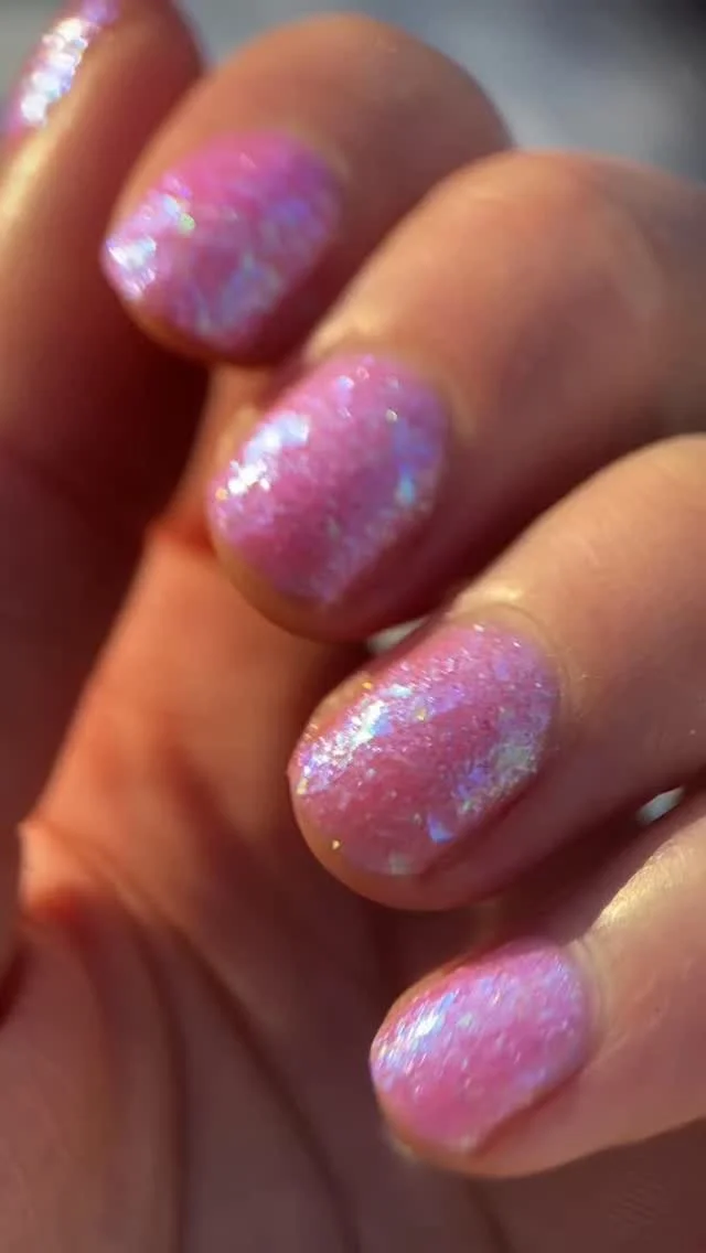“Such a pretty shade and perfect for summer. I love the iridescent flakies in this one.”